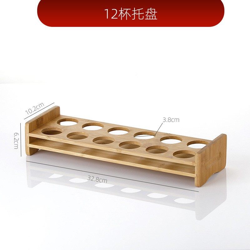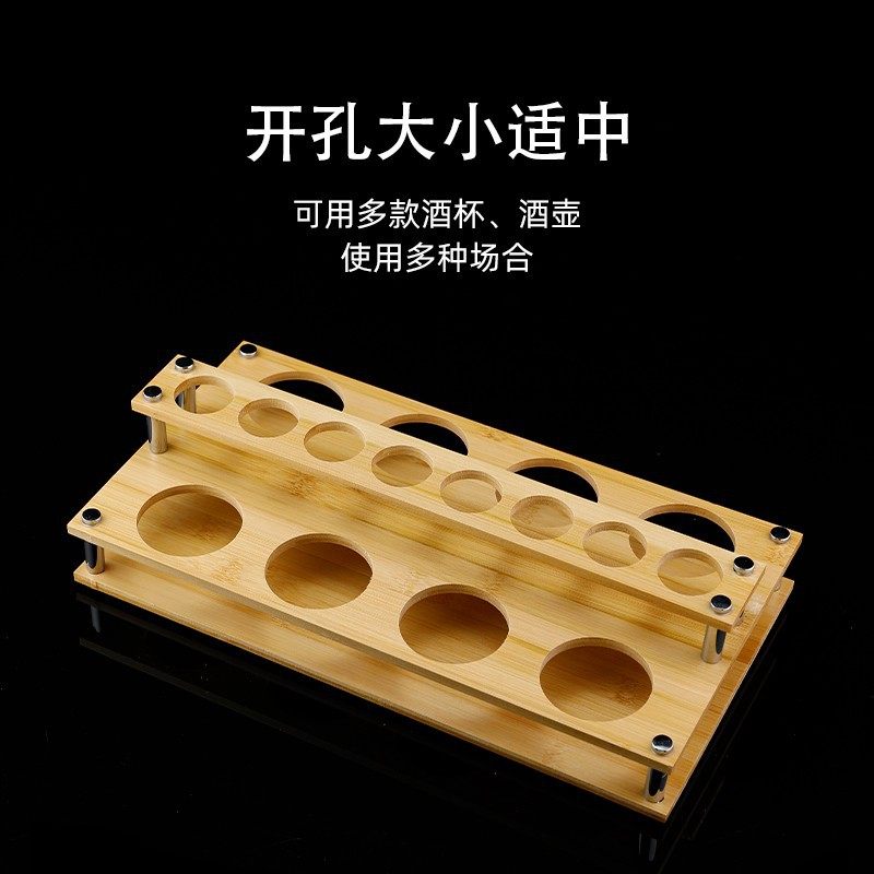 厂家便携白酒酒具竹木收纳木架烈酒杯子弹杯一口杯分酒器架子托盘