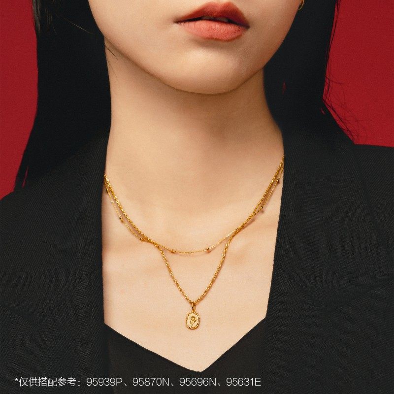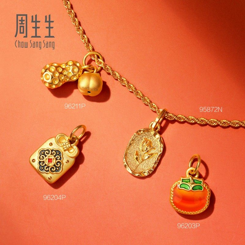 圣诞礼物周生生永系列郁金香火漆印章黄金吊坠足金挂坠项坠95939P