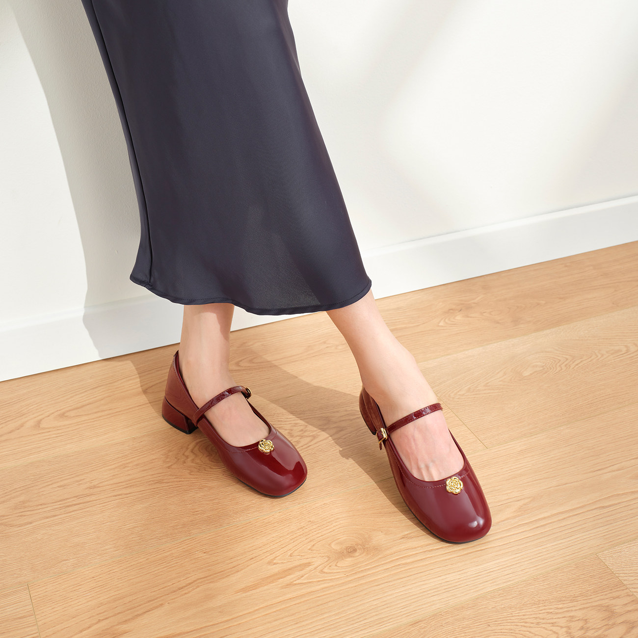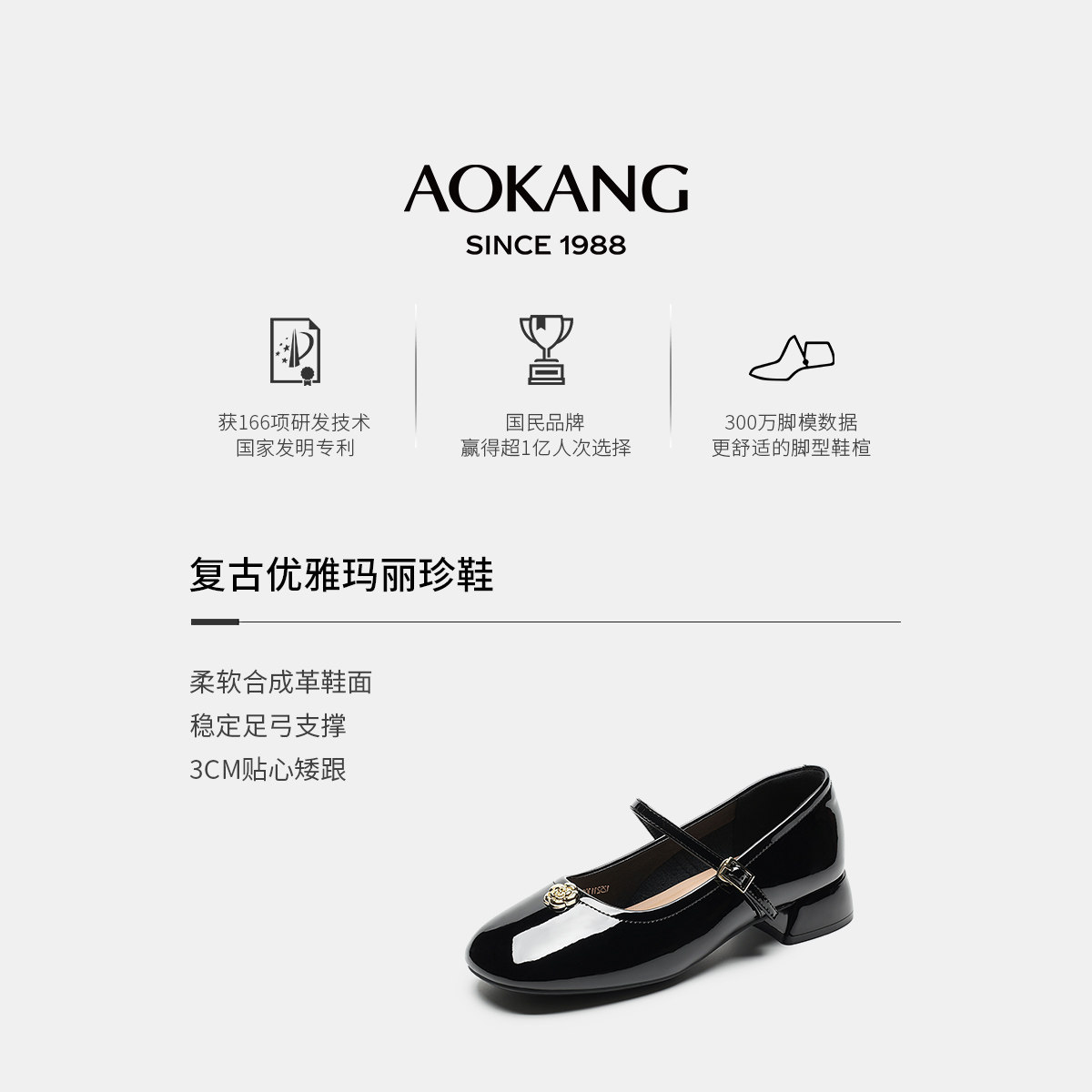 奥康 女鞋2025春秋玛丽珍鞋优雅山茶花一字带中跟鞋门店发货