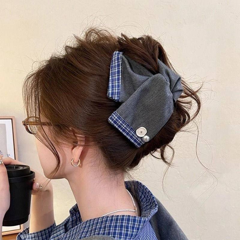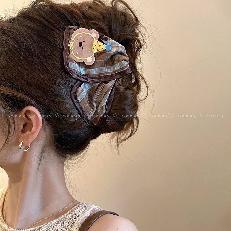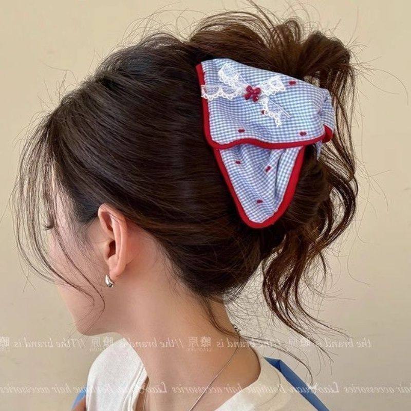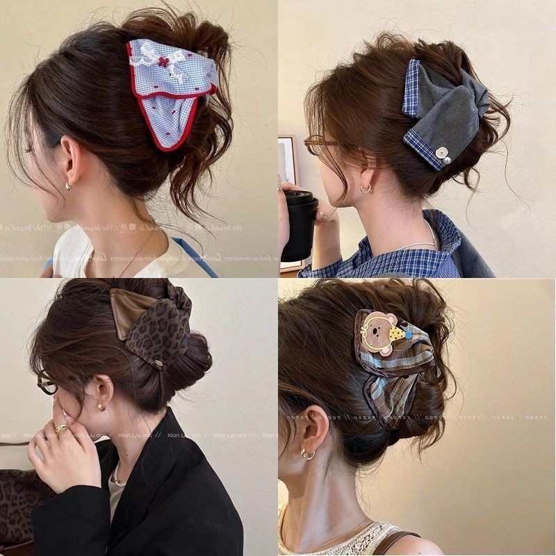 复古皮质豹纹卡通蕾丝格纹三角抓夹新款高级百搭后脑勺鲨鱼夹头饰