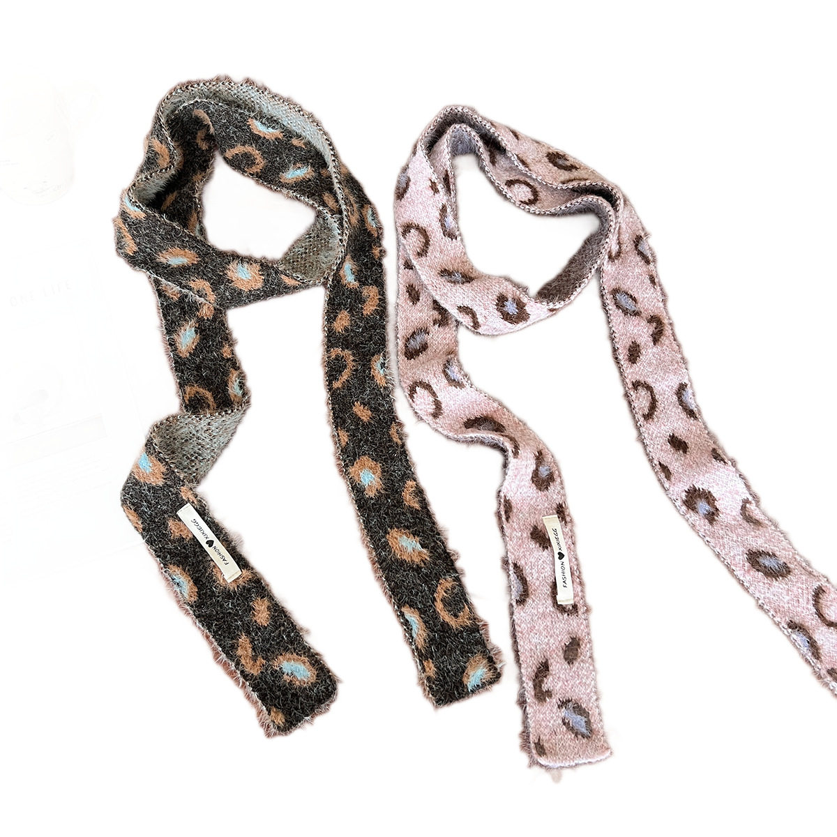 含羊毛豹纹细窄长款围巾男女秋冬季保暖韩系氛围感辣妹装饰围脖潮