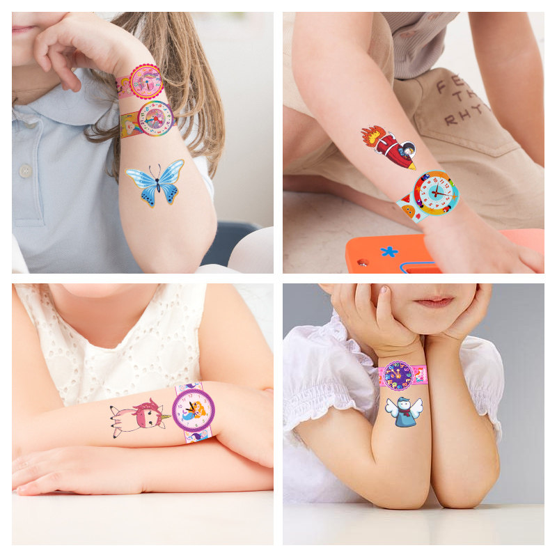 儿童手表纹身贴贴纸贴画安全防水无毒可洗女宝宝公主卡通夜光手表水转印贴纸男孩玩具学生手链纹身贴定制
