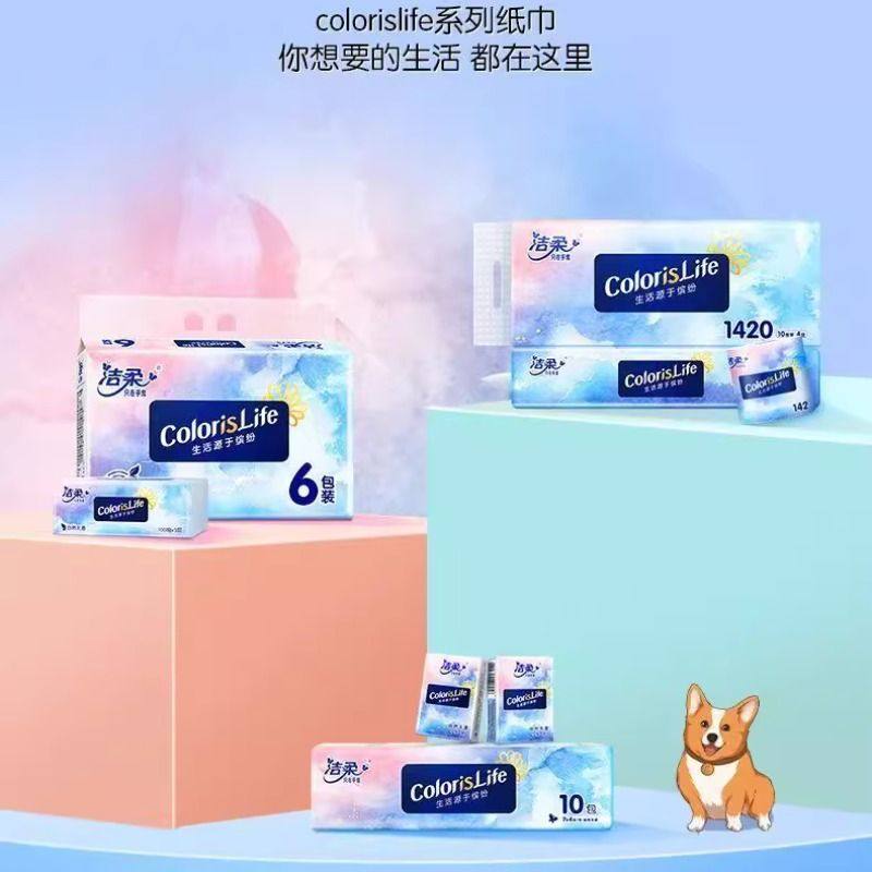 【洁柔】缤纷抽纸3层100抽纸巾可湿水餐面巾纸家用实惠装卫生纸巾