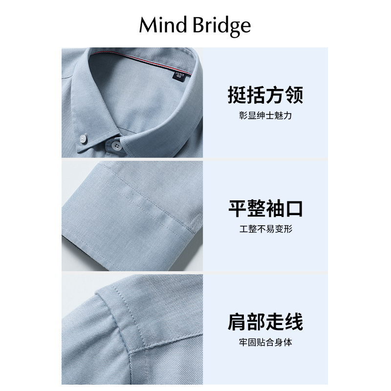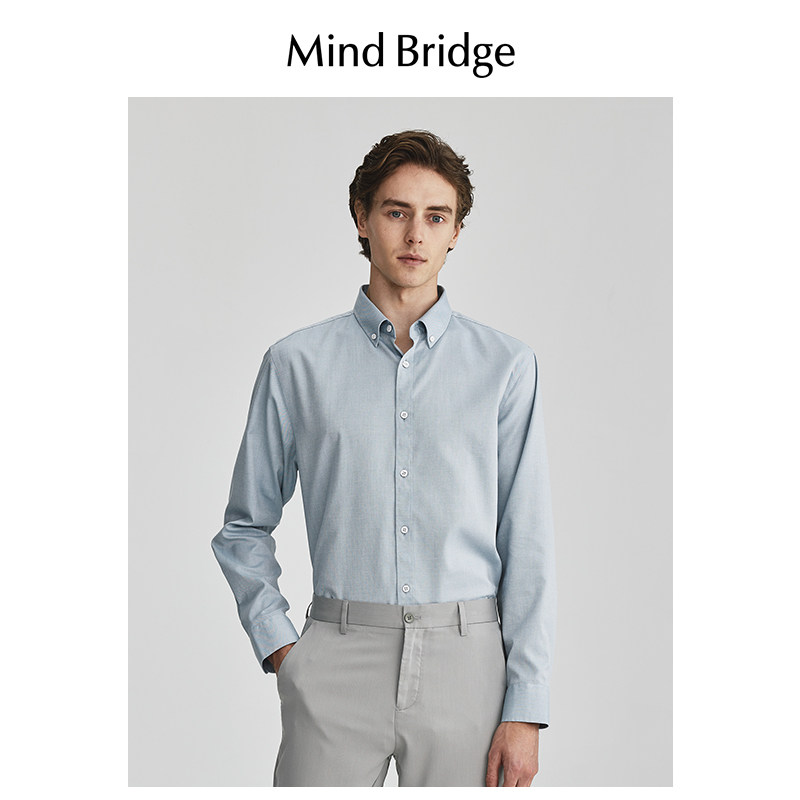 Mind Bridge2025秋季纯色长袖衬衫男士商务纯棉衬衣通勤休闲免烫