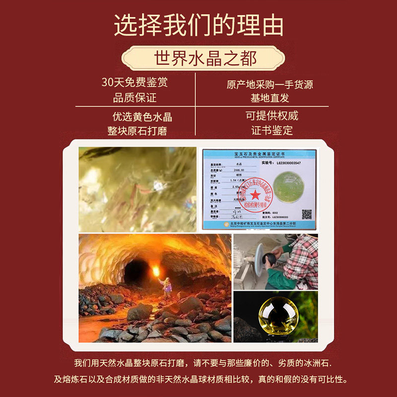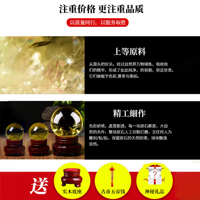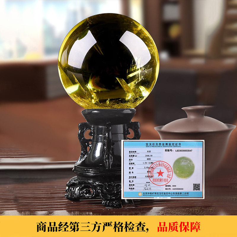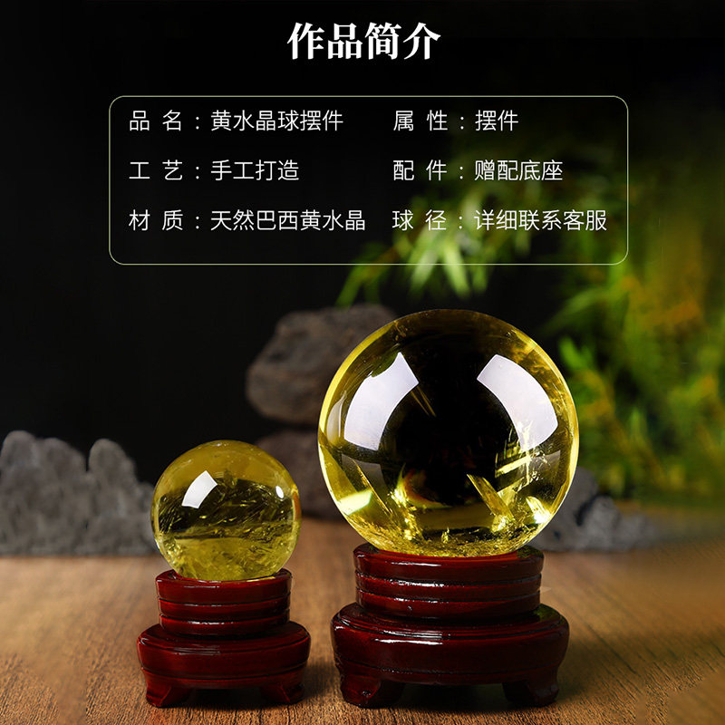 天然黄水晶球摆件通透款收藏级高冰透体巴西原矿石手工打磨工艺品