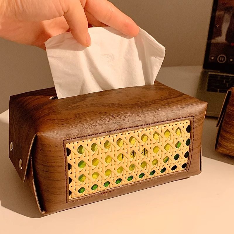 复古藤编纸巾盒高档轻奢高级感家用客厅创意中古风桌面抽纸盒卧室
