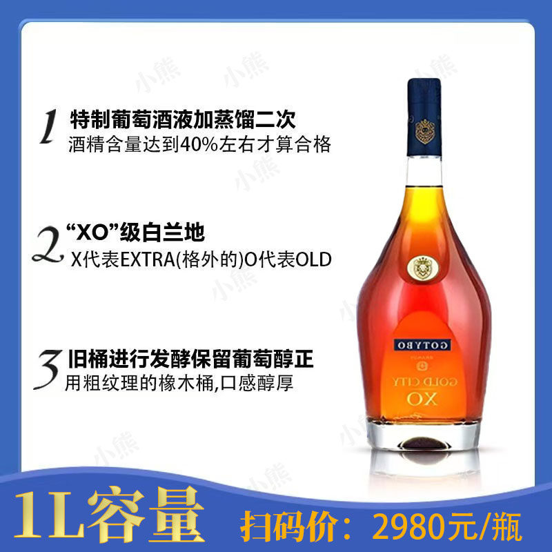【海外进口】法国进口豪狮XO白兰地 法国洋酒1L原装礼盒送礼