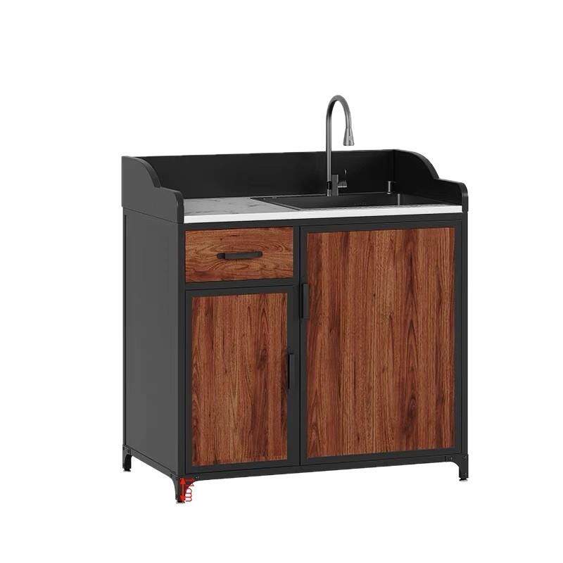 实木金属餐边柜水池一体高柜办公室工业风茶水柜厨房储物柜置物柜