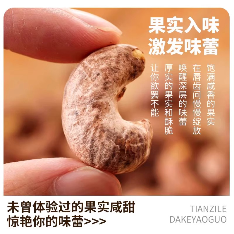 腰果仁2025新货大颗粒带皮原味紫衣坚果干年货零食盐焗官方旗舰店