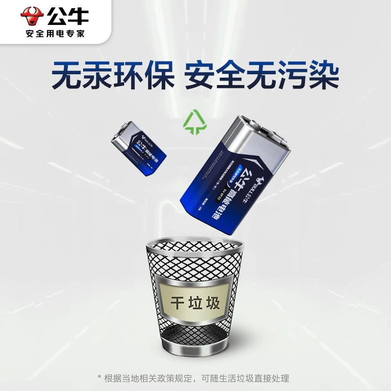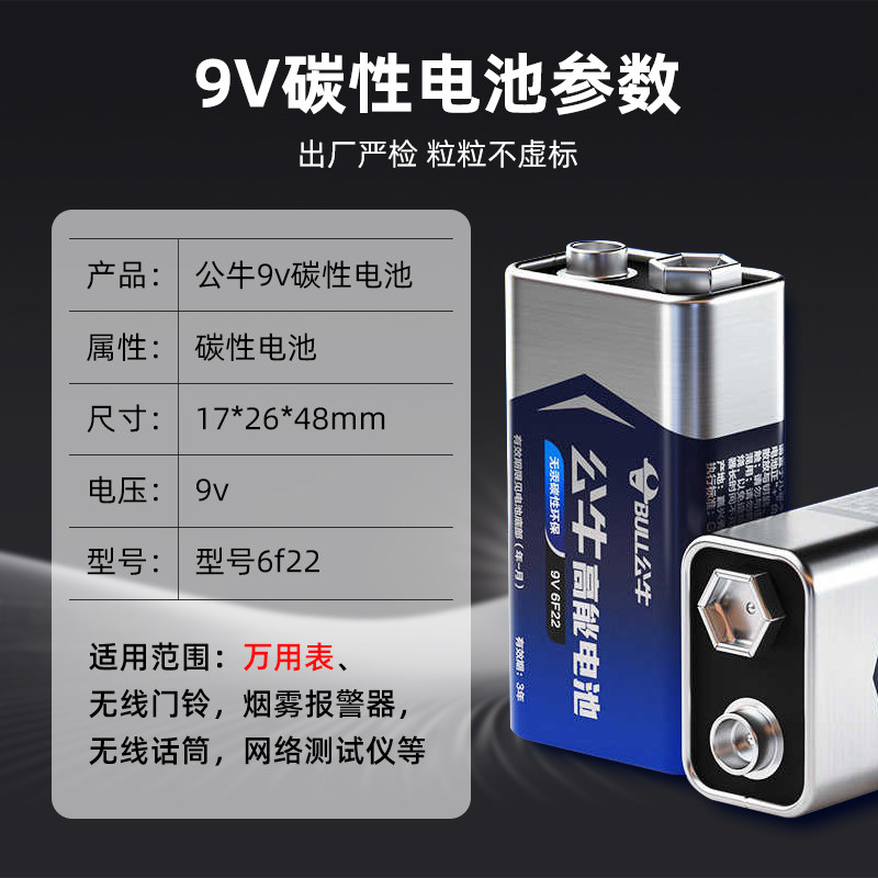 公牛9v电池方块电池6F22遥控器无线话筒万用表9号干电池烟雾报警器九伏碳性非充电9V正品6f22型