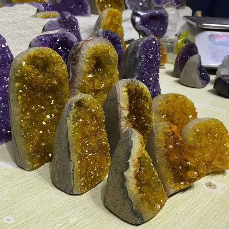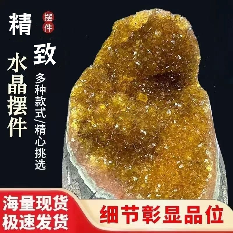 乌拉圭黄水晶洞摆件水晶簇巴西黄晶洞烤色晶镇家居玄关消磁石招财
