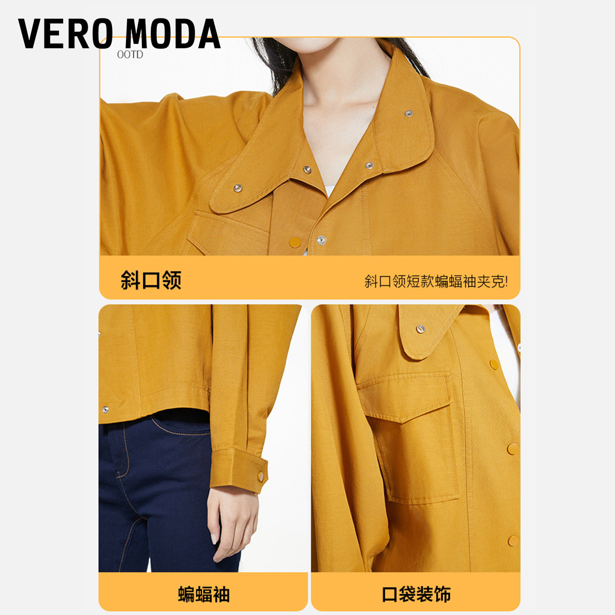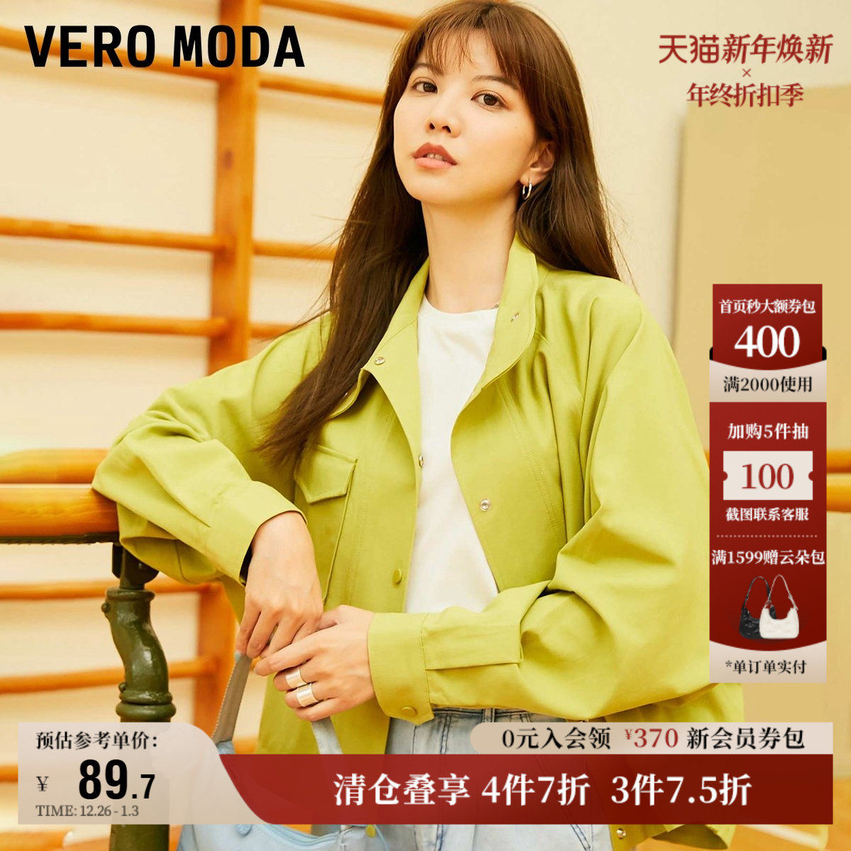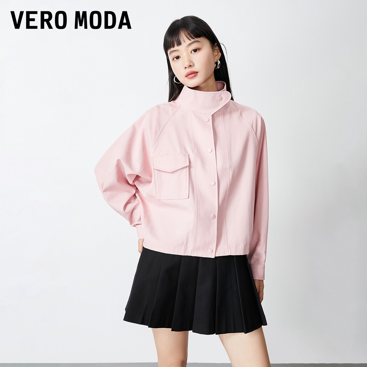 Vero Moda奥莱夹克外套女秋季新款直筒立领简约休闲通勤上衣大衣