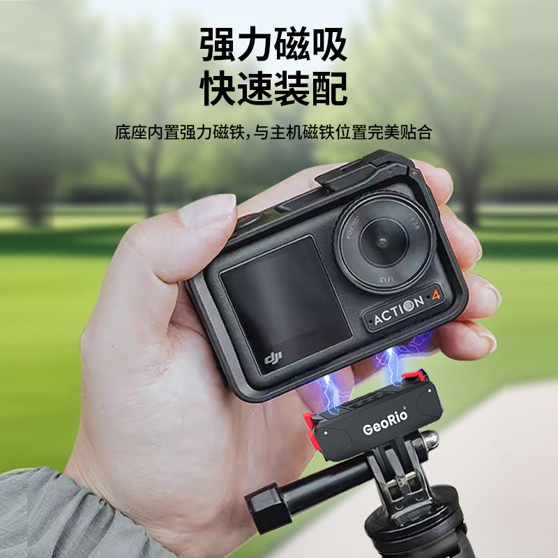 奇沃适用dji大疆action5pro磁吸快拆底座大疆磁吸快拆转接座运动相机两爪转接座DJI Action3/4骑行支架配件