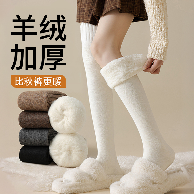 羊绒过膝袜女秋冬加绒加厚保暖毛圈大腿袜子jk制服长筒袜羊毛加长