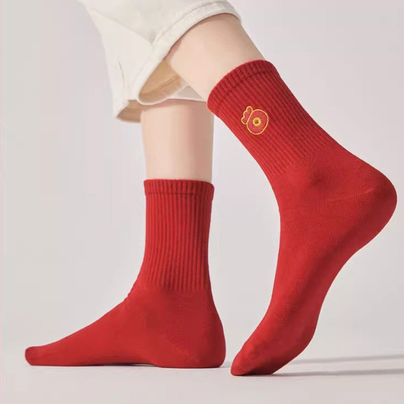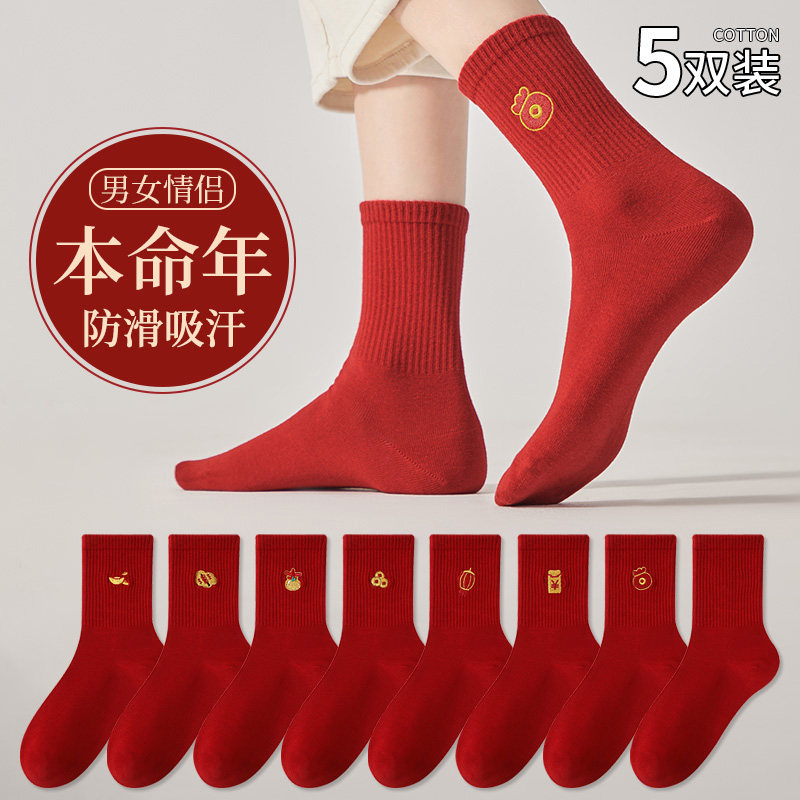 本命年红色袜子男女2025新款爆款秋冬中筒袜马年新年礼物长袜吸汗