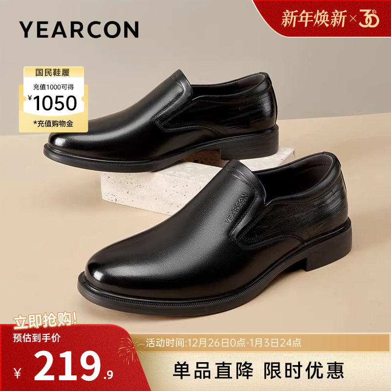 意尔康男鞋2025新款冬秋季真皮正装商务男士皮鞋结婚新郎加绒软底