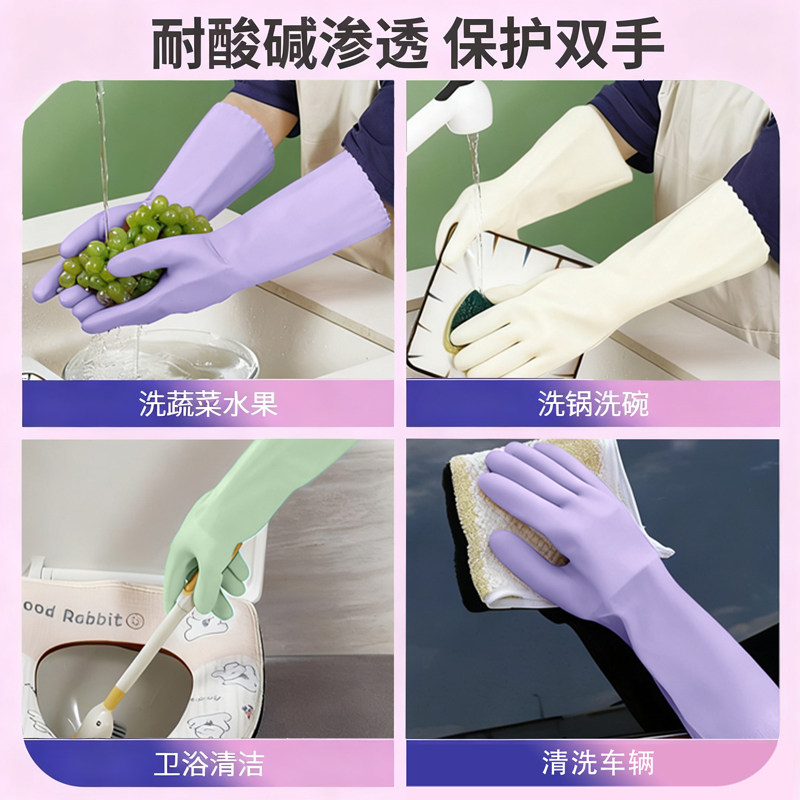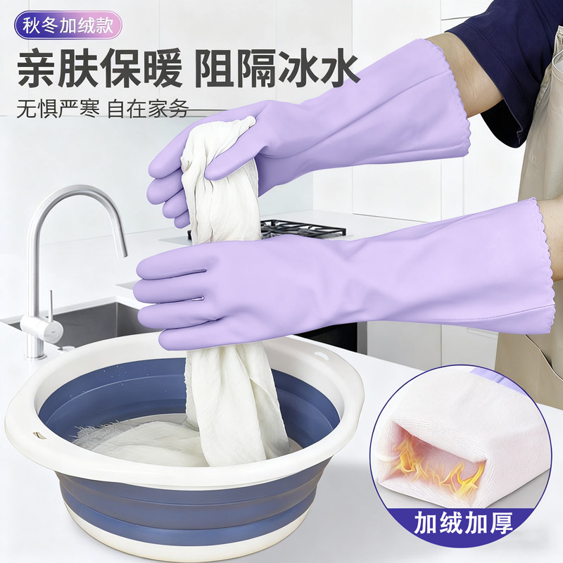 洗碗手套加绒加厚保暖家用男女清洁防水胶皮洗衣加长家务防滑洗车