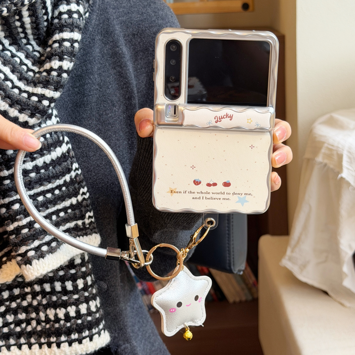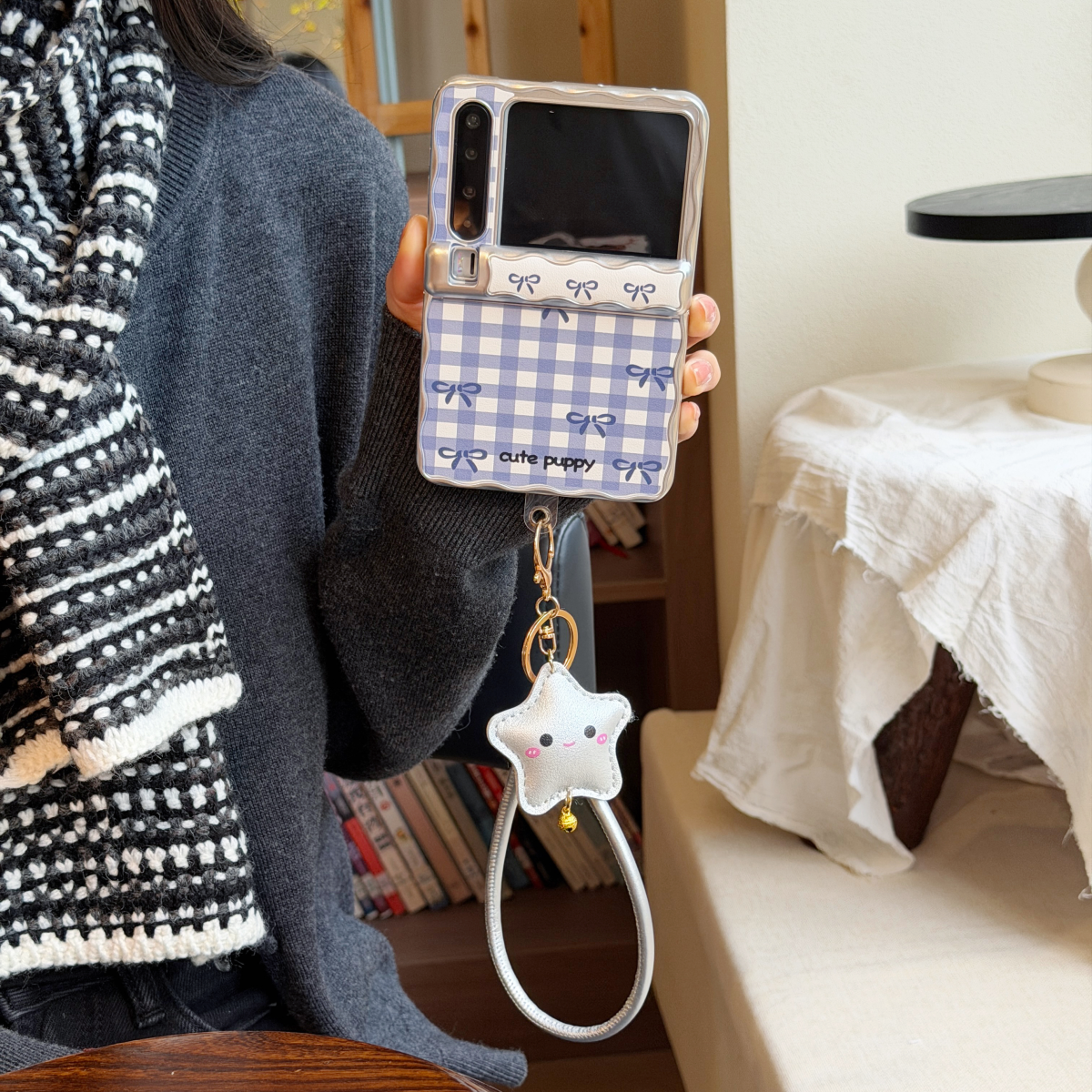简约波浪边皮质樱桃格子蝴蝶结适用华为purax典藏版折叠屏手机壳翻盖护中轴铰链全包Pura X保护套少女款外壳