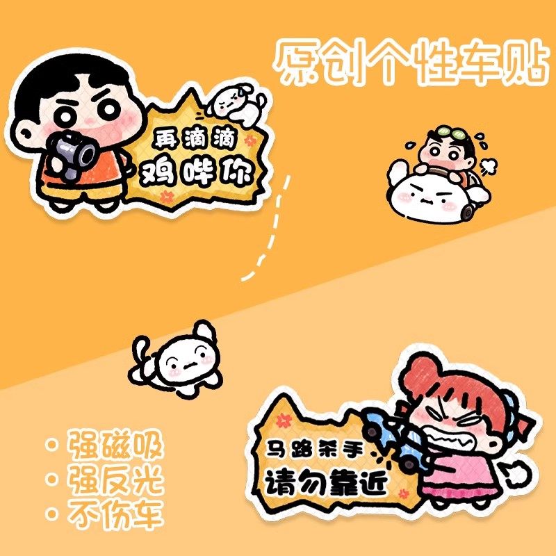 卡通反光车贴磁吸贴汽车尾装饰新手女司机专用babyincar磁贴实习