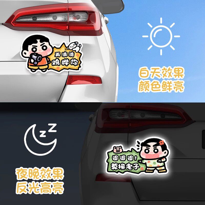 反光贴汽车贴纸保持车距警示创意个性车尾保险杠划痕遮挡装饰车贴