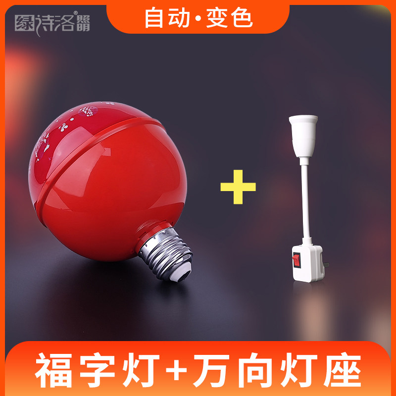 拍1发4春节过年七彩变色福字灯新款装饰灯泡发财灯氛围灯防水室内