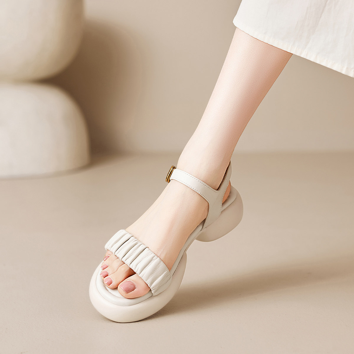 真皮~骄屿凉鞋女绝美外穿2025新款夏高级感配裙子厚底夹脚罗马鞋