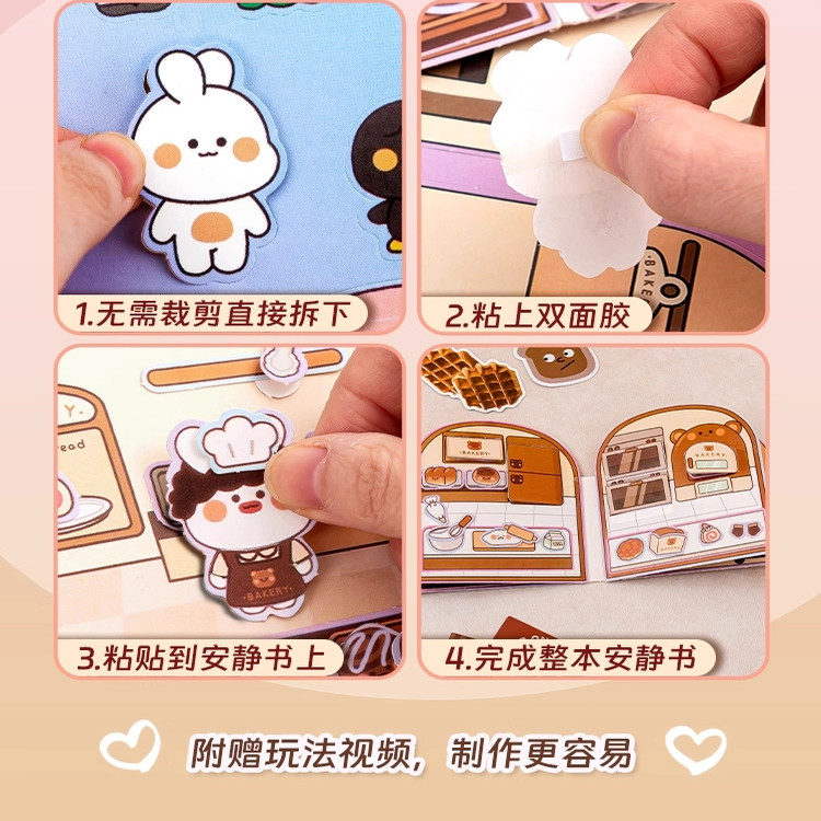 女孩安静书全部免裁剪豪华新款华夫饼美食小吃店安静书diy豆豆本立体书儿童手工玩具不用剪仓鼠面包店全套书