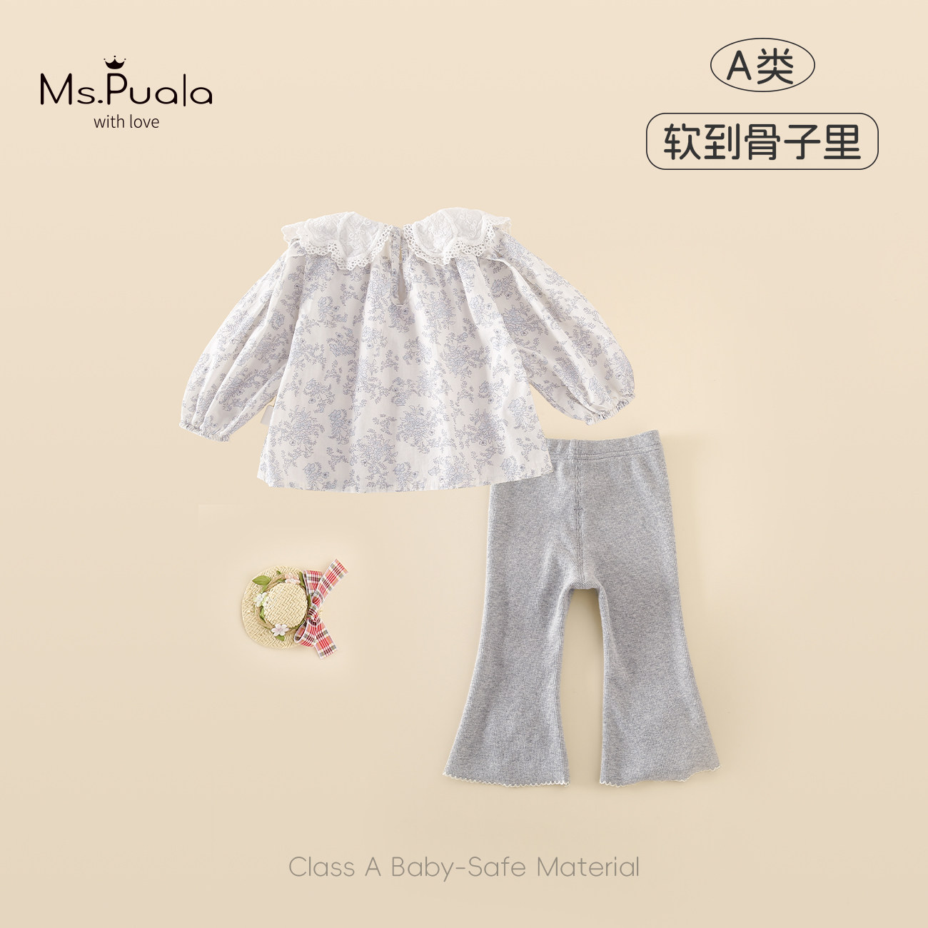 Ms.Puala女童套装2026春款婴幼儿女宝宝碎花娃娃衬衫喇叭裤两件套