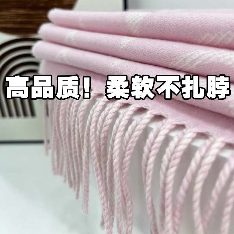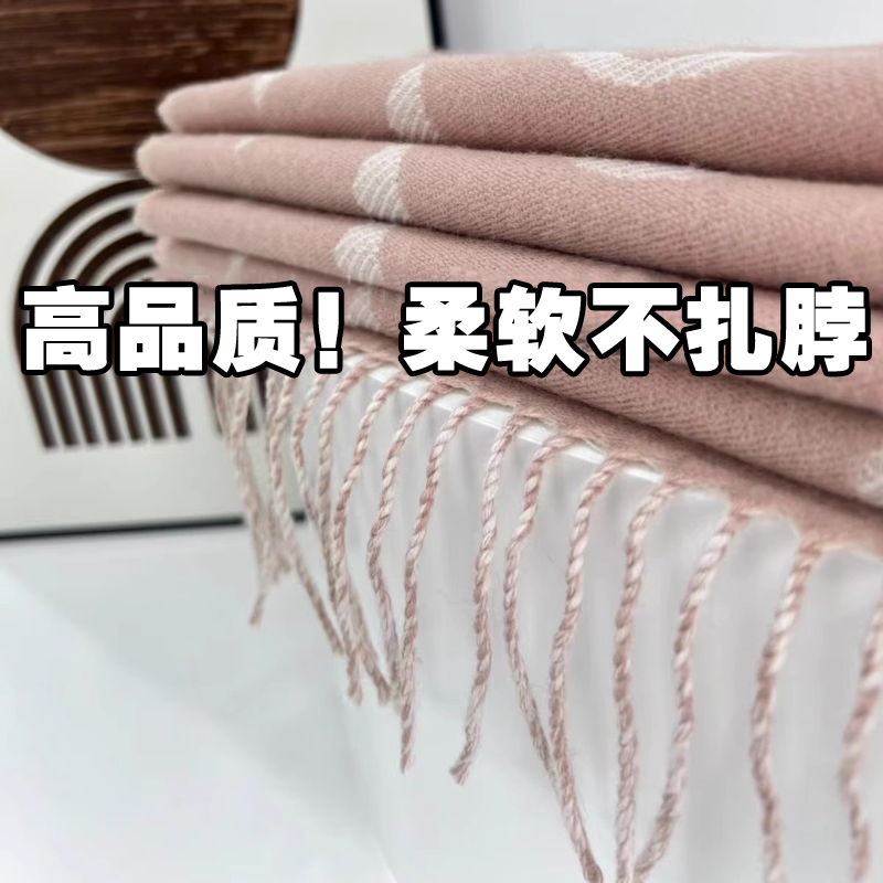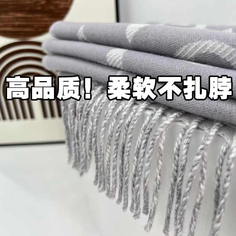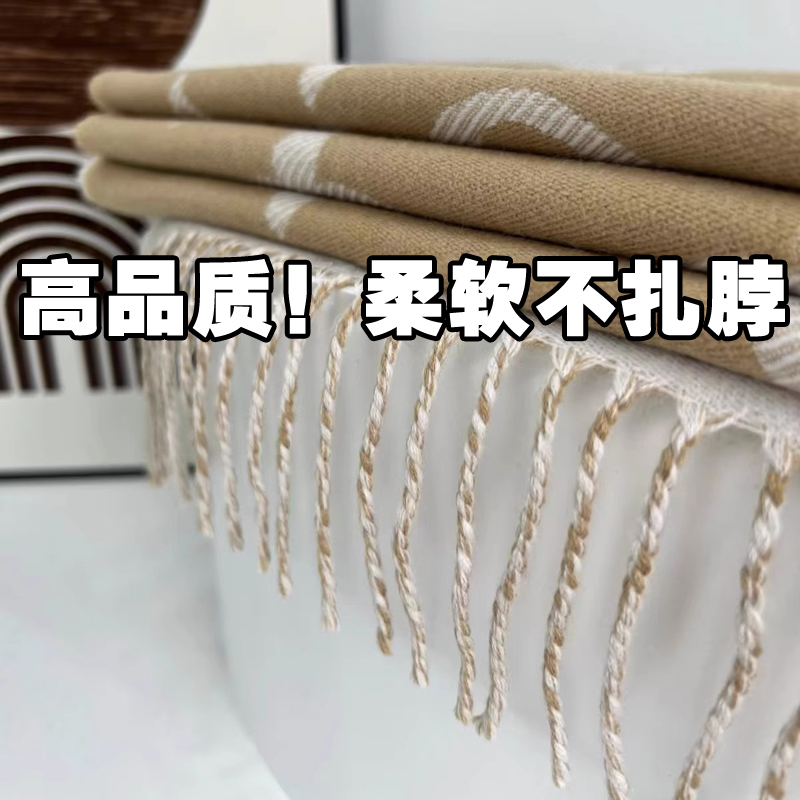 高级感羊毛围巾女双面黑灰奶茶羊绒披肩大老花字母保暖厚围脖冬季