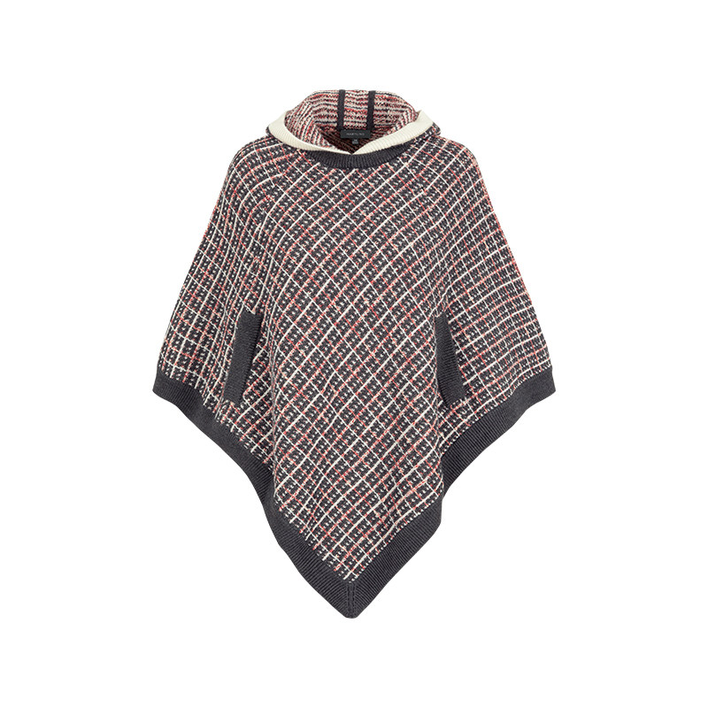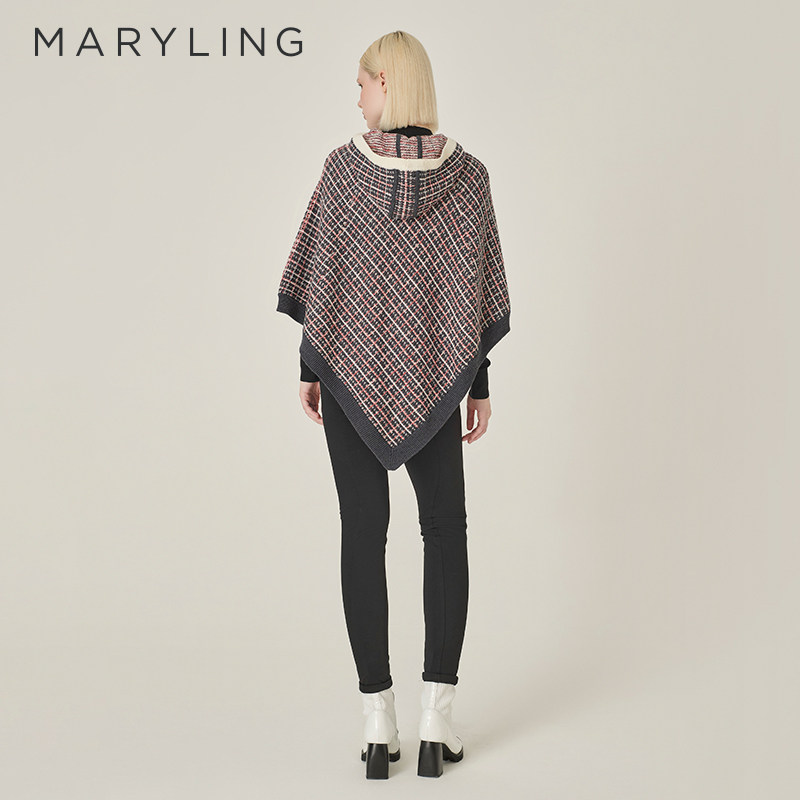 MARYLING玛俪琳秋季新品红黑色连帽针织格纹披肩A1EGW03500