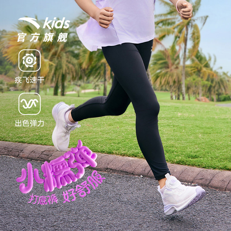 安踏儿童女童针织打底裤2025夏透气舒适亲肤中大童速干紧身打底裤