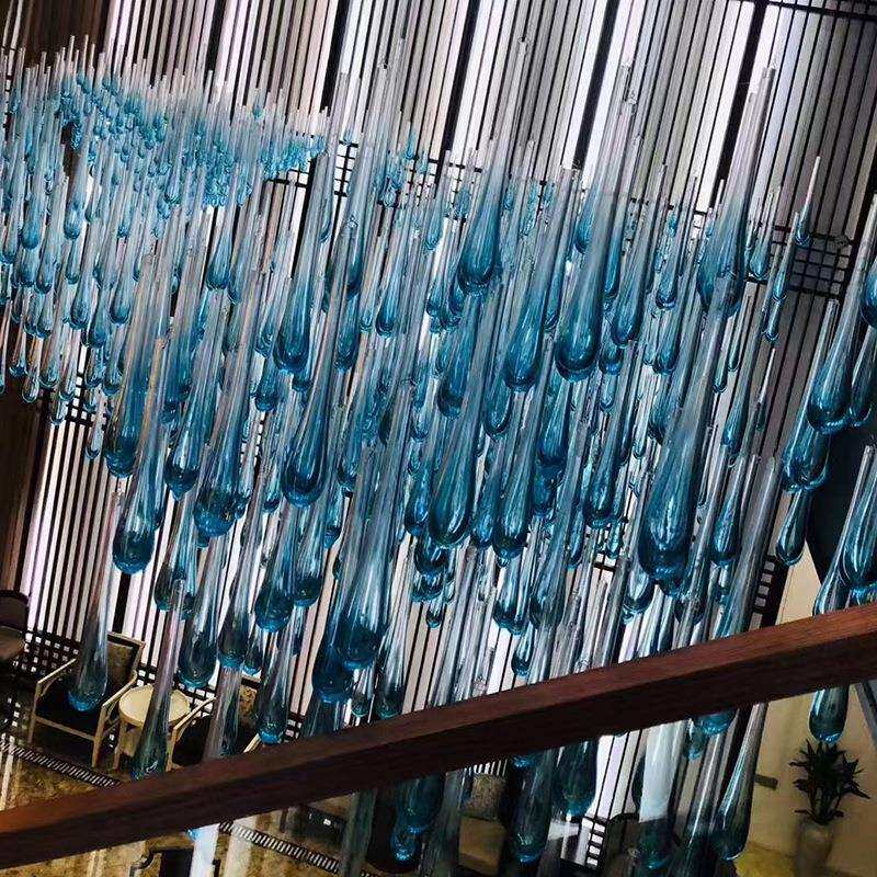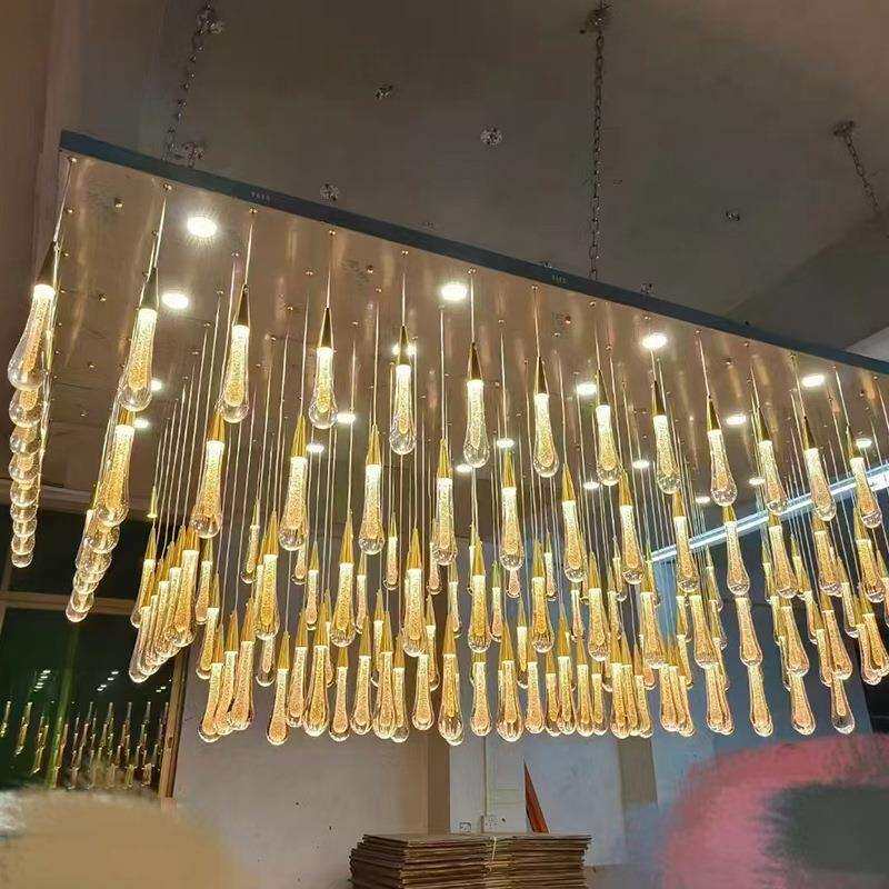 非标工程灯现代风格玻璃吊灯长条入户玄关水滴吊灯别墅楼梯挑空灯