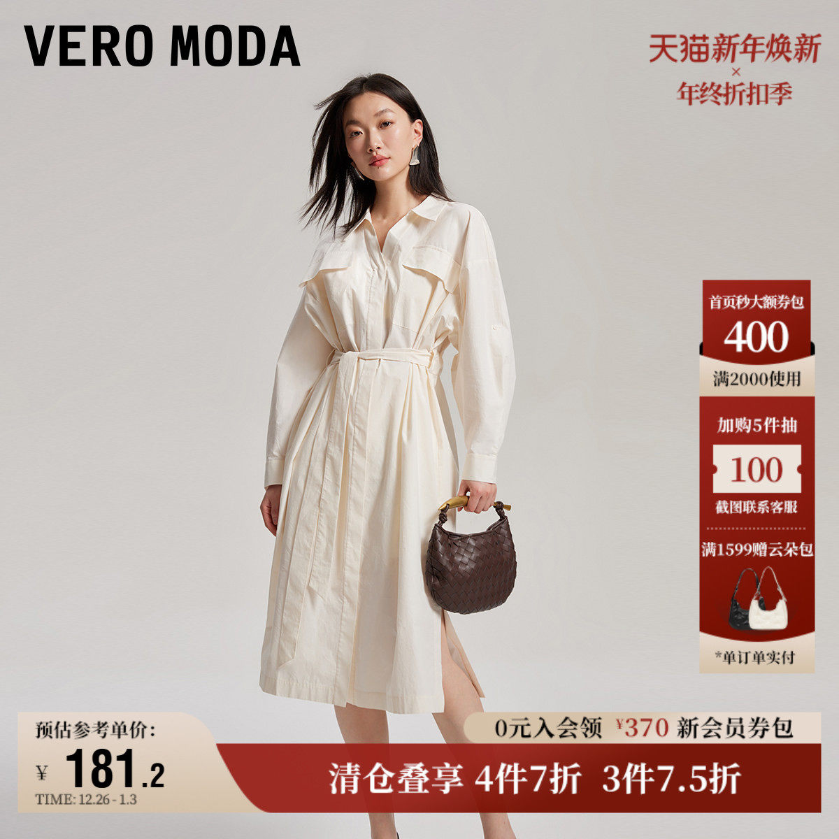 Vero Moda奥莱连衣裙女秋季新款落肩气质长袖宽松休闲衬衫裙子