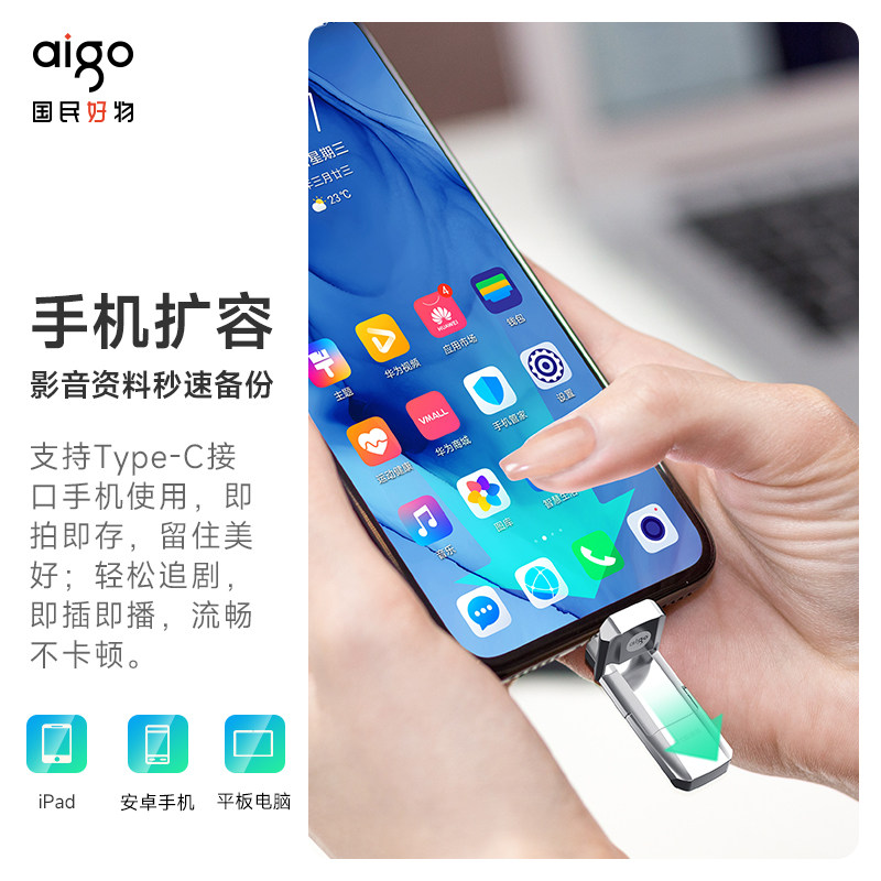 爱国者固态u盘1t大容量手机电脑两用高速typec双接口优盘正品512g