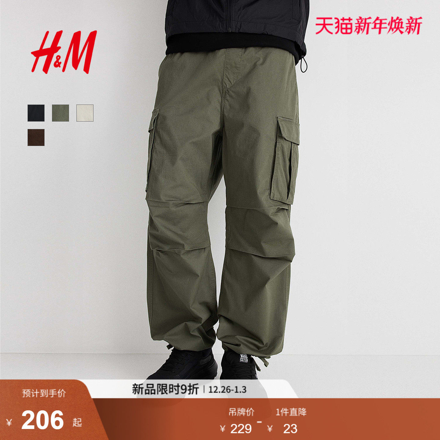HM男装休闲裤冬季棉质中腰松紧腰直筒版通勤长裤工装裤1228206