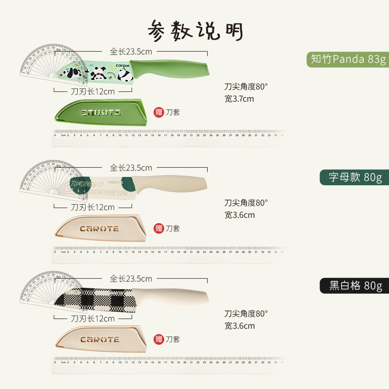 卡罗特家用水果刀菜刀切肉切片刀不锈钢刀厨房宝宝辅食刀宿舍刀具