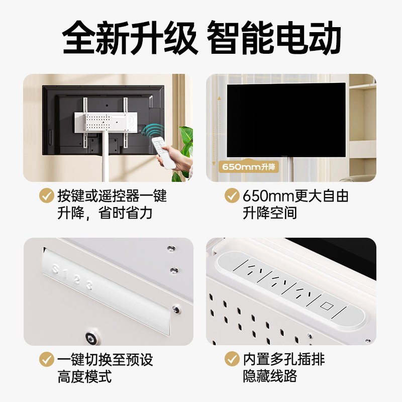 恩利普电动电视机移动支架智能升降落地式推车55/65/75寸通用挂架