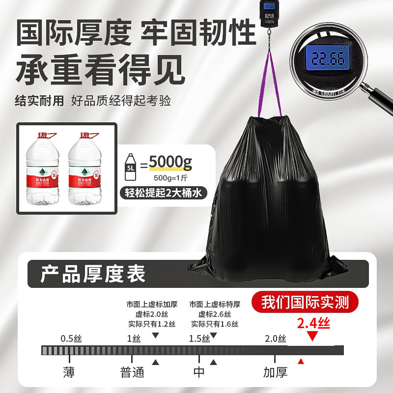 家用垃圾袋抽绳式手提式加厚免撕厨房办公室特厚大号塑料袋子黑色
