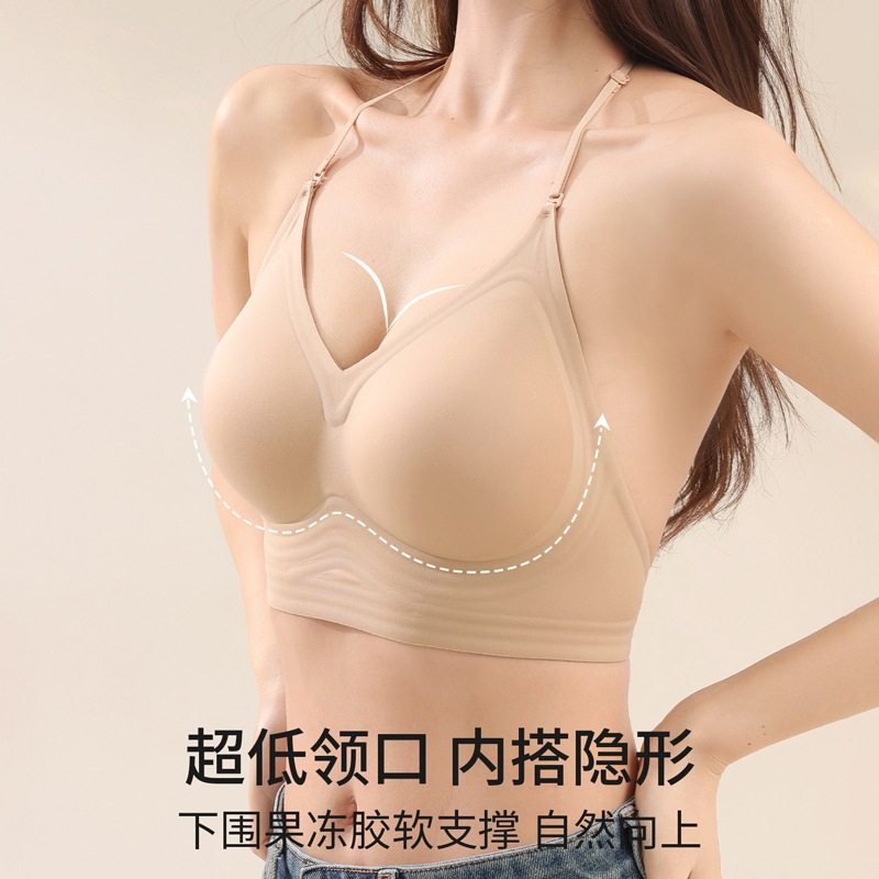 多穿式美背内衣女挂脖交叉式聚拢上托性感无痕大U露背性感文胸罩