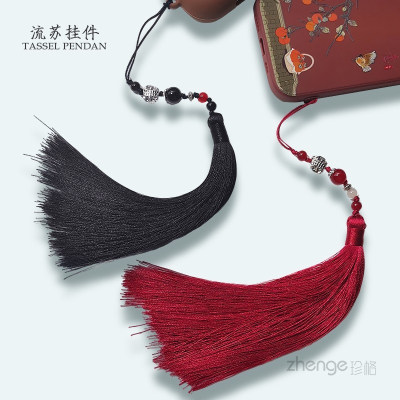 国潮冰丝流苏挂件古风穗子挂饰壳钥匙扣包包吊坠饰品古装扇子挂件