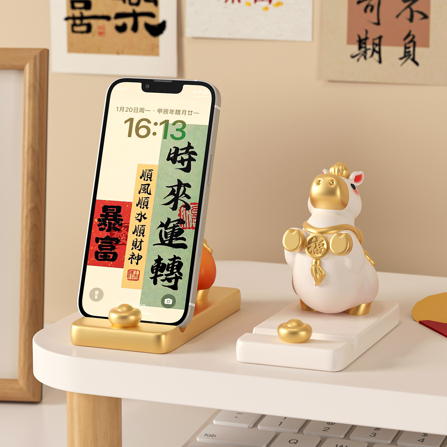 创意马上有钱摆件手机支架办公室工位桌面装饰情绪稳定器生日礼物