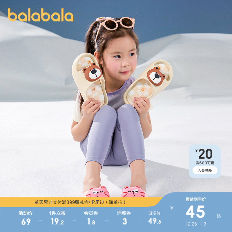 巴拉巴拉童鞋儿童拖鞋男童女童浴室家居鞋2025夏新款卡通动物凉拖