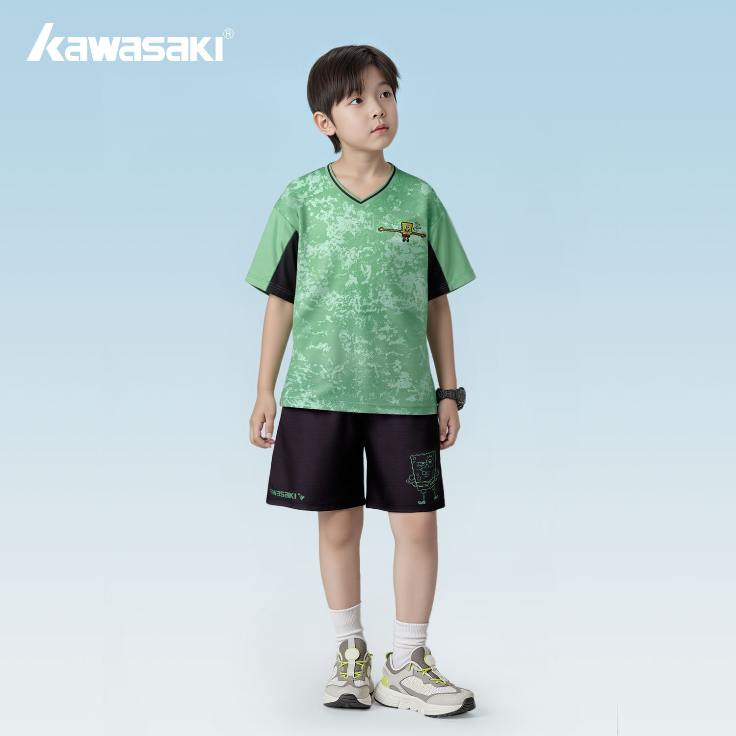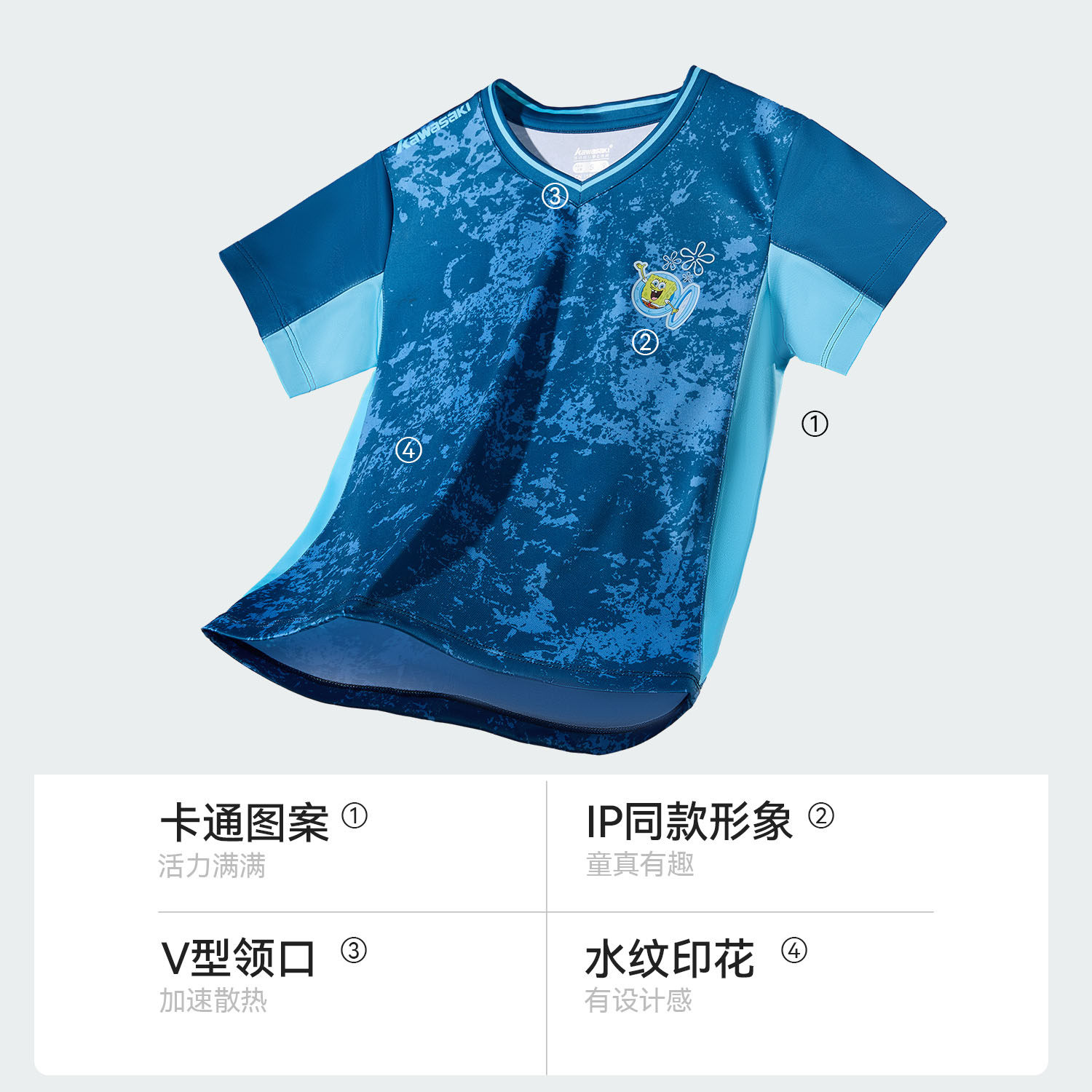 川崎青少年羽毛球服套装海绵宝宝男童速干透气运动训练短裤短袖