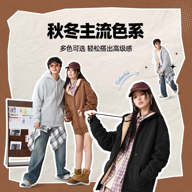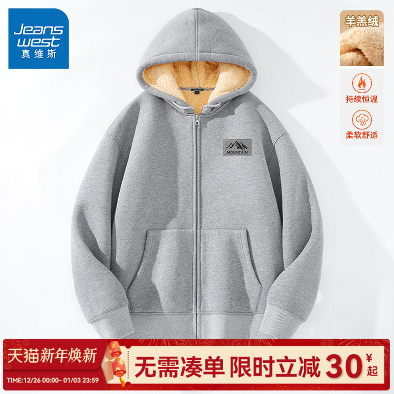 GV真维斯加绒外套男冬季羊羔绒开衫卫衣加厚连帽男士冬装上衣潮C