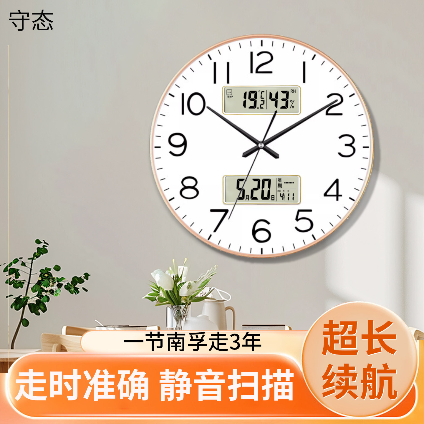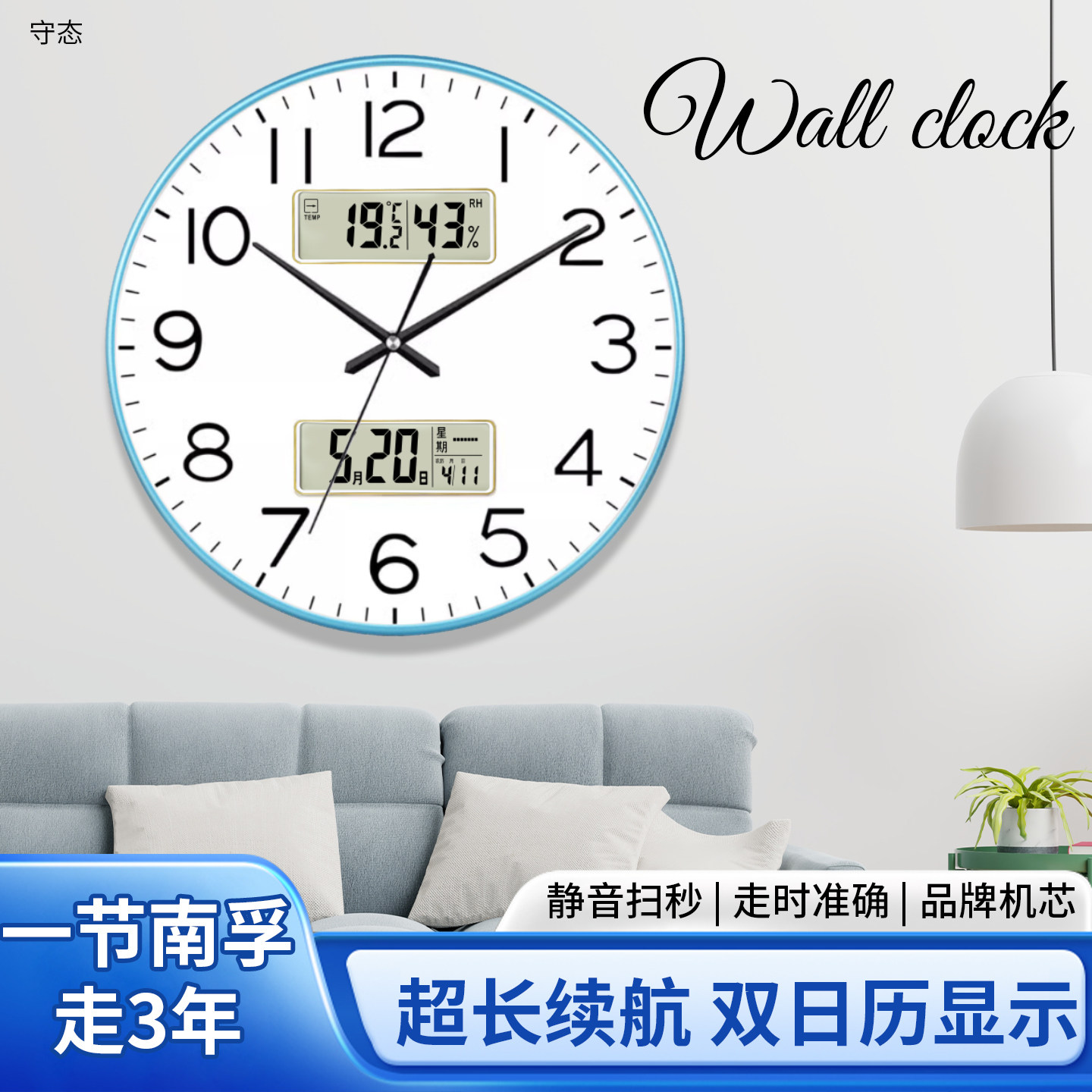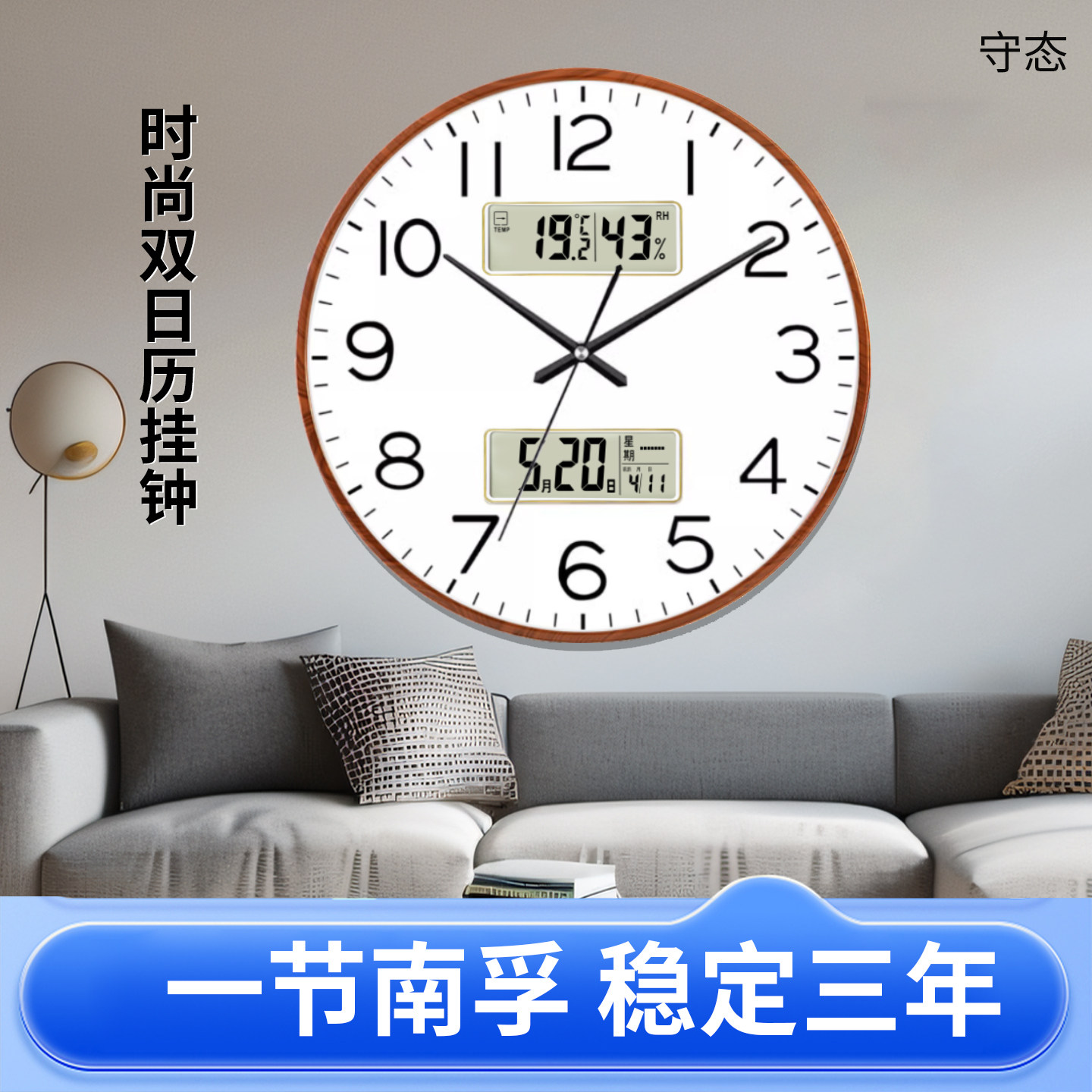 25款双显日历钟表挂钟客厅静音电子挂墙钟表家用时尚时钟石英钟