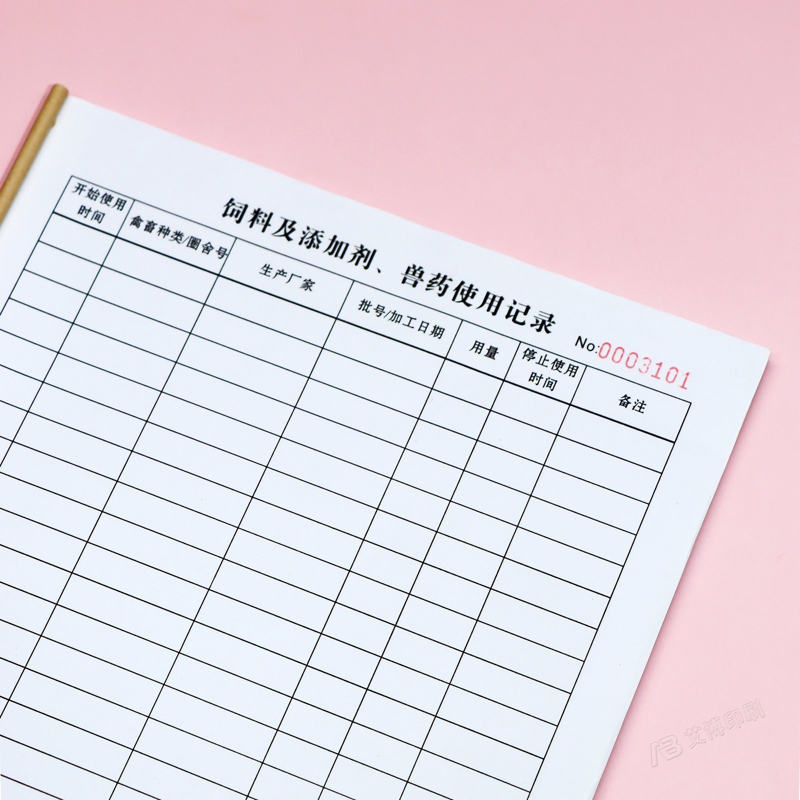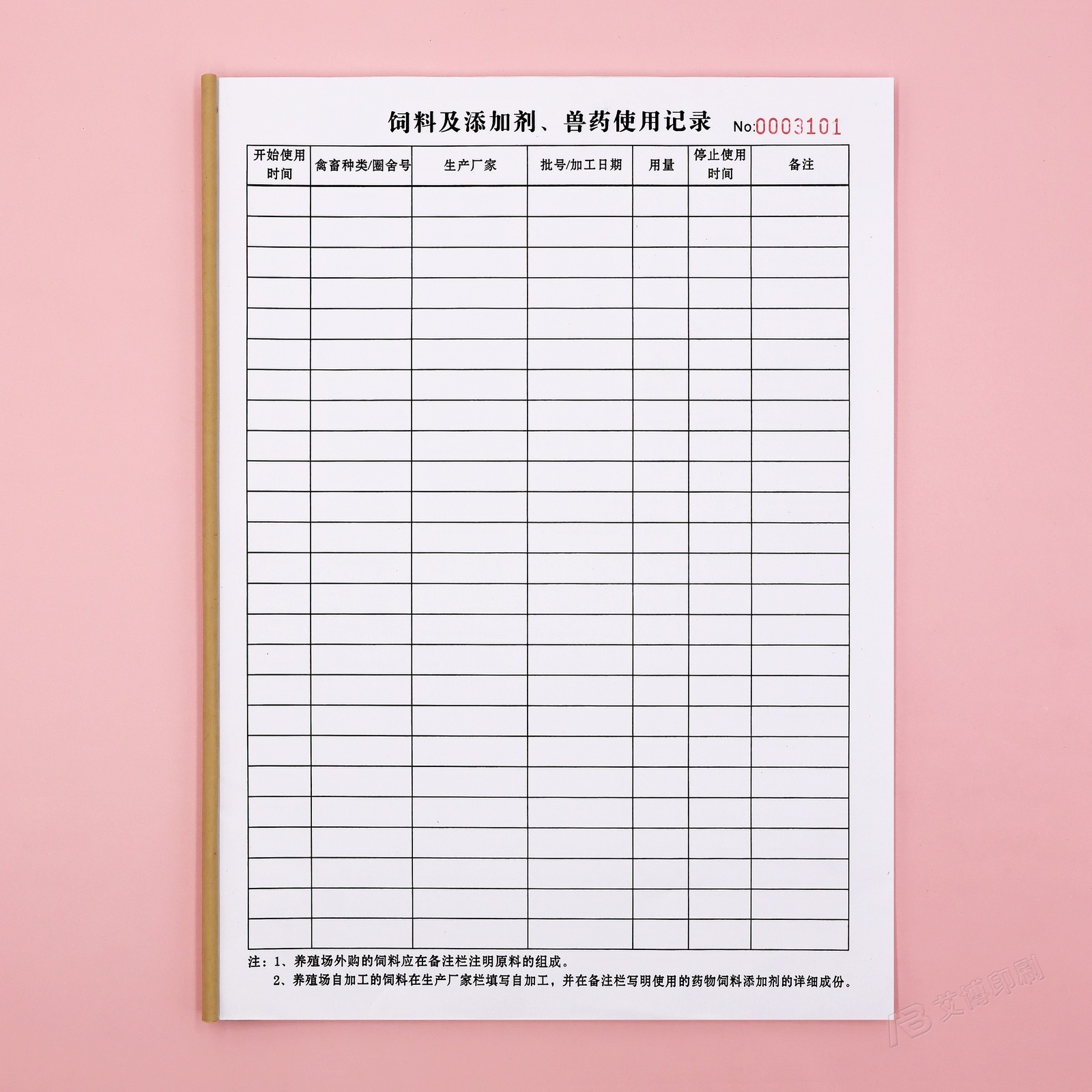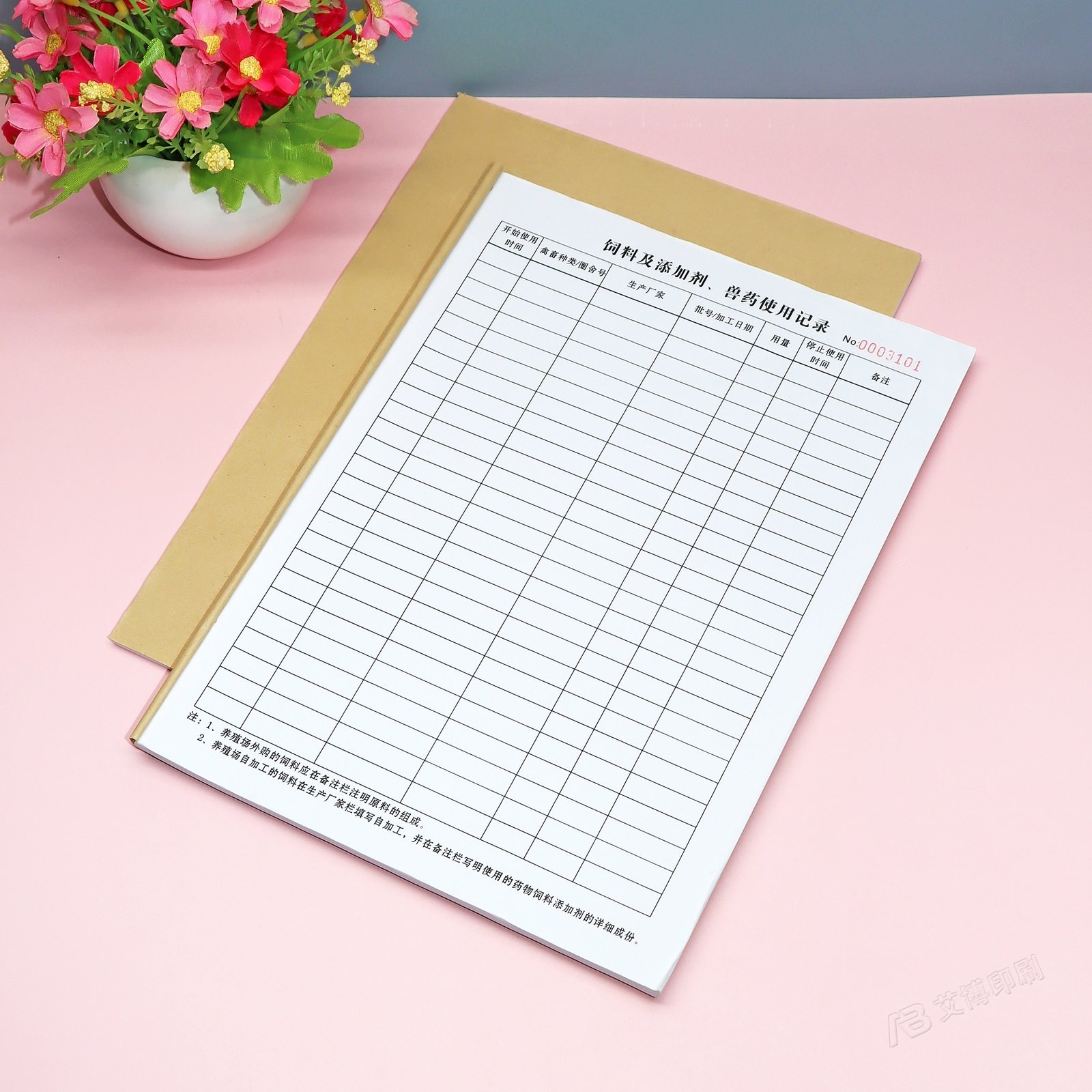 养殖场外购饲料登记本A4养猪鸡鸭场添加剂兽药使用明细记录表定制