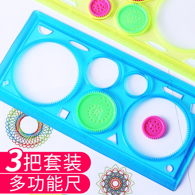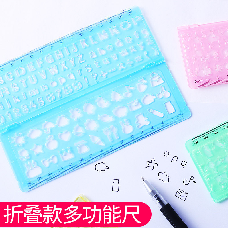 学生用尺子直尺手抄报模板尺套装小学生画画多功能量角器绘画儿童女可爱镂空曲线测量波浪尺绘图20cm