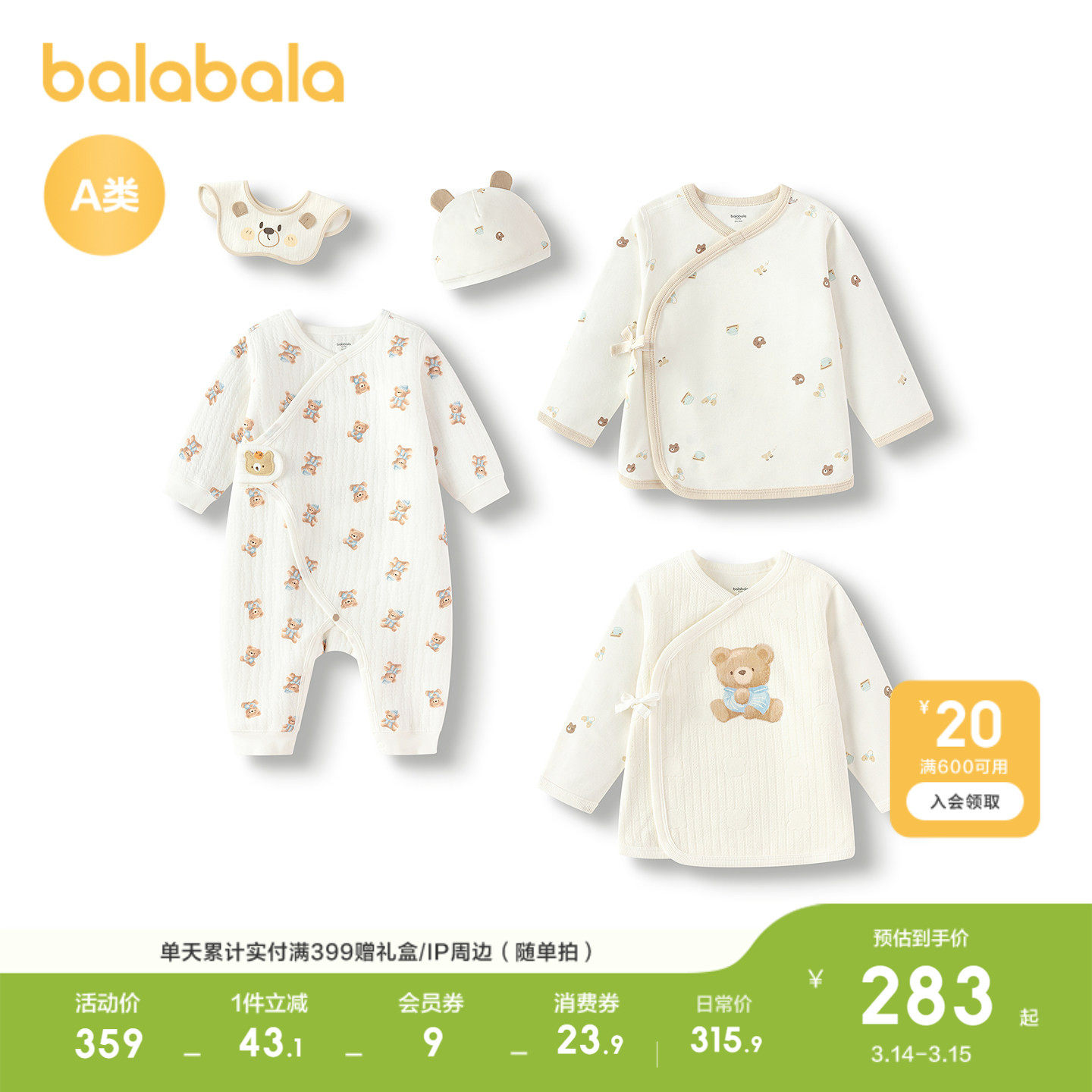 【商场同款】巴拉巴拉新生儿用品大全初生宝宝衣服满月礼五件装萌