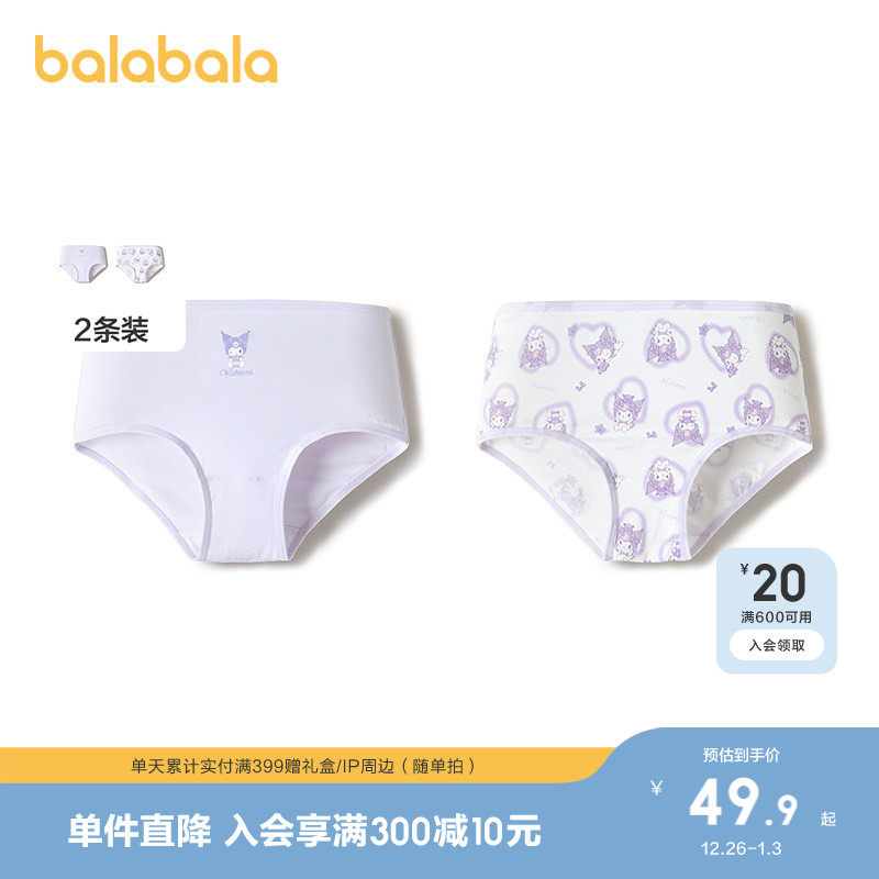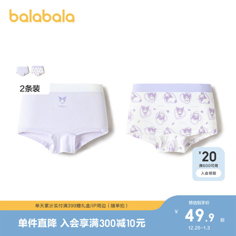 【库洛米IP联名】巴拉巴拉女童内裤平角三角四角儿童短裤两条装潮