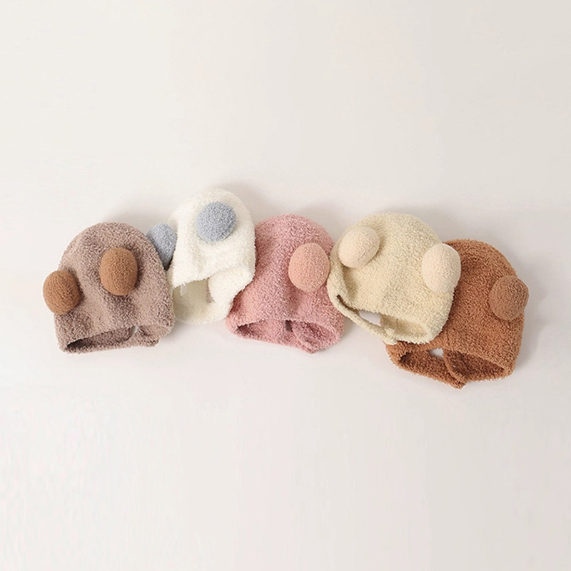 尼多熊婴儿帽子秋围脖一体宝宝毛绒帽防风护耳帽冬季保暖婴幼儿帽